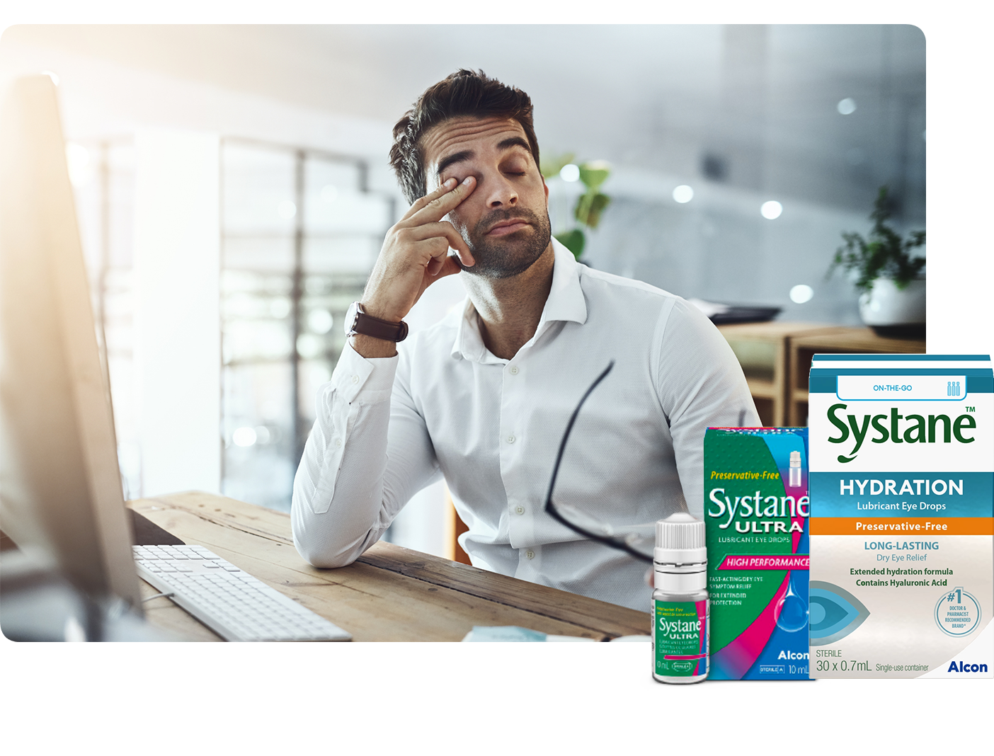 Systane® Preservative Free formulas provide dry eye relief from environmental factors: screen time, air quality, and/or seasonal issues (low humidity and high winds).