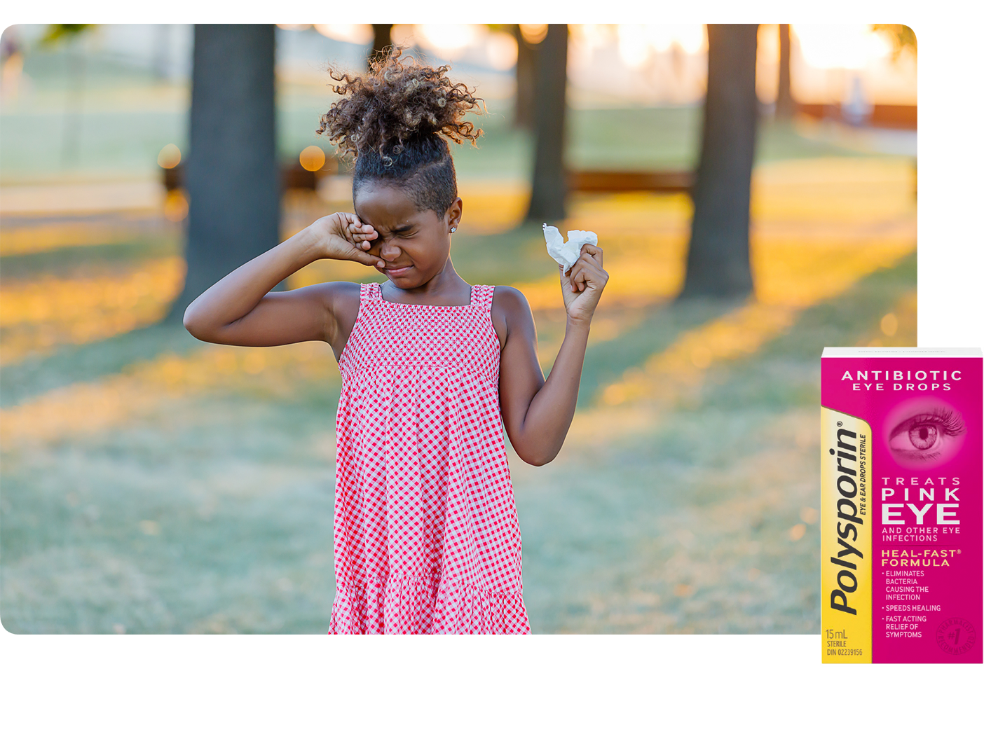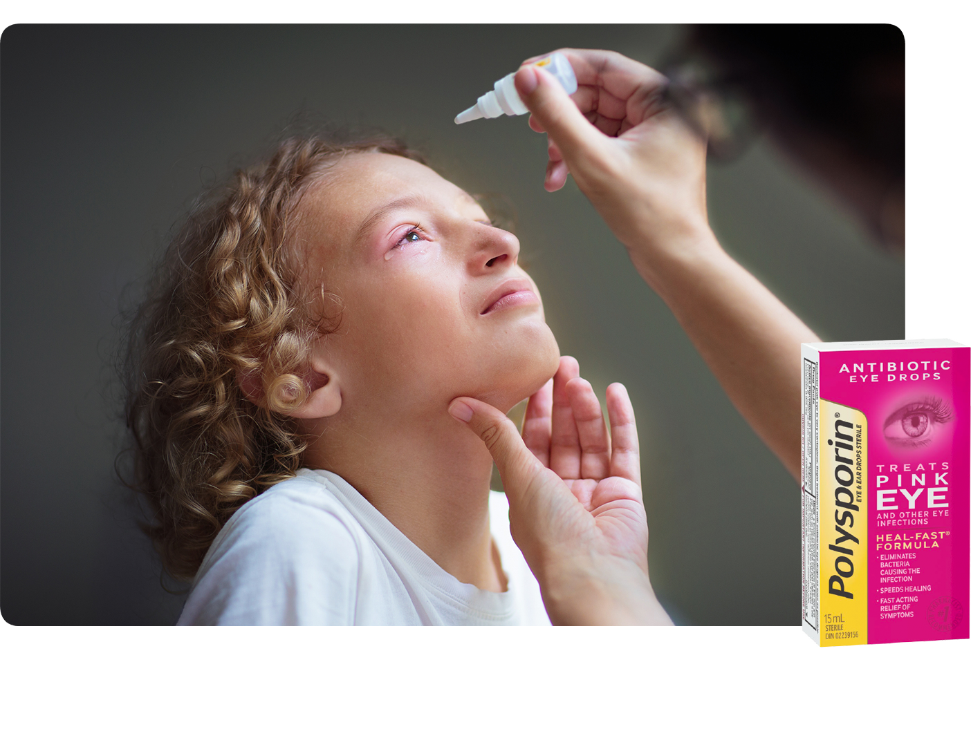 Pink Eye is inflammation of the transparent membrane that lines your eyelid and can be caused by viruses, infections or other irritants. Choose a product like Polysporin® Pink Eye.